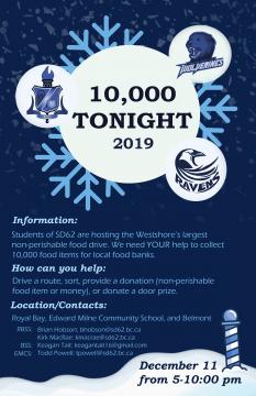 The Sooke School District (SD62) is thrilled to announce that the 10,000 Tonight initiative to feed the Western Communities as well as Sooke and Port Renfrew, was once again, a smashing success!